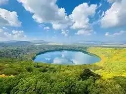 I heard that in the past, visitors could only see the full panoramic round volcanic lake with a drone, but now you just need to climb up to the observation tower to take it all in.