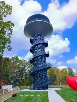 The observation tower is on the mountain and you still need to climb 20 minutes up wooden stairs.