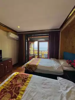 The hotel has a European-style design, a charming five-story building with swings and seating in the courtyard. Our sea-view room was so soothing🌊—cozy, well-equipped, with soft bedding that had the kids sleeping soundly💤. The balcony had wicker chairs and a table, perfect for enjoying the sea breeze at sunset or sunrise, and every photo looked like a vibe📷.