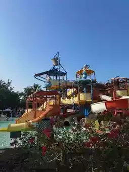I stayed at a hotel in Zhongjiao, where I saw a stunning sunset that I will never forget. The hotel also had a children's water park and various cute animals. Unfortunately, it was too cold to play in the water park or try the rafting activity, so I could only enjoy the scenery.