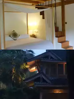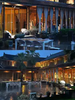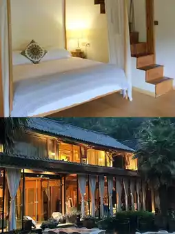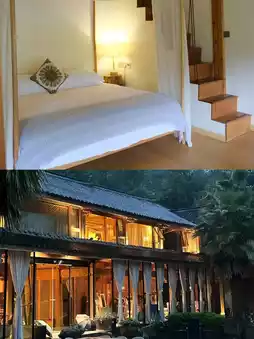 Deep in the mountains of Taishun, Wenzhou, stumble upon "Yue Lan She," a blend of She ethnic style and Southeast Asian charm. Floor-to-ceiling windows frame palm trees 🌴, mountain vistas, and the sky into a flowing masterpiece—every snapshot feels like a Southeast Asian getaway 🧳.