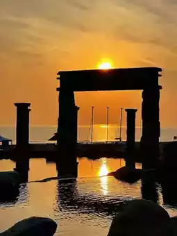 ๐ท1 Enchanting Hot Spring Bayโs curved colonnade (soft light and fewer people at sunrise)
