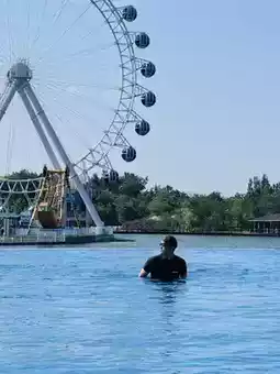 1. The park is large. Free boats shuttle to the Ferris wheel’s opposite shore. The mini train costs 30 RMB for unlimited rides all day, stopping at every attraction; sightseeing cars cost 20 RMB one way. Choose according to your needs.
