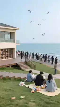 • Lonely Library: Open bookshelf facing the sea, full of literary vibes. Book in the app one day in advance! Few people at 7 AM, backlit side shots are stunning, but professional cameras are not allowed inside.