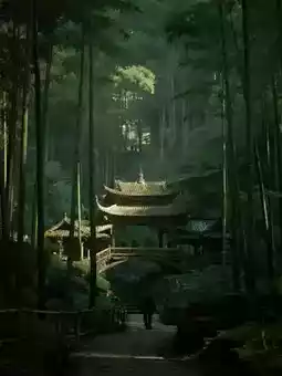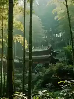 Mist-hidden Bamboo Fragrance Walking in the Rain