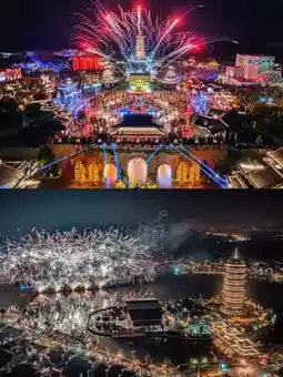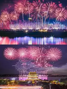 Here, you can see the perfect combination of ancient town and fireworks, as if traveling back in time to a bustling ancient market. You may also encounter iron flower performances and dragon and phoenix dances, creating a timeless scene.