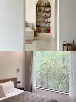 The room is surrounded by forests and built on the mountain ⛰️, away from the hustle and bustle of the city, making people relieve their fatigue ❕ The room is fully equipped with fully transparent floor-to-ceiling windows🪟, and there are mountains and forests outside🌳. When the morning sun☀️ shines in, the whole house is naturally bright. The modern architecture gives people a simple and warm feeling at home💕