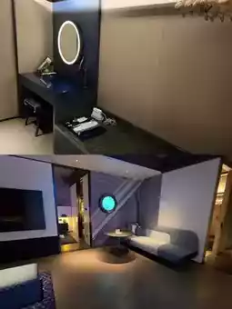 ✅Hotel Appearance: The overall architectural style is very modern, with smooth lines and a unique shape that stands out among the surrounding buildings. At night, when the lights are on, it looks like a futuristic city, making for super cool photos that are full of technology and style📸.