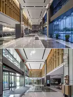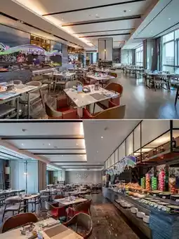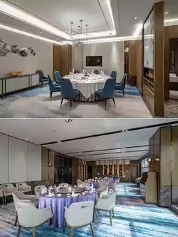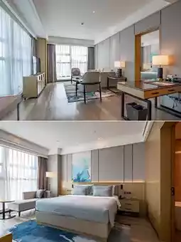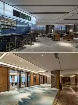 The hotel lobby features a high ceiling with a simple yet elegant design. The designer used clean, flowing lines to outline the geometric beauty of the space. The lobby bar has aesthetically pleasing pendant lights inspired by the waves of Xiangjiang River, with every detail exuding an "understated luxury" style. The entire lobby area perfectly interprets the "modern Chinese style," combining oriental elegance with vibrant energy.