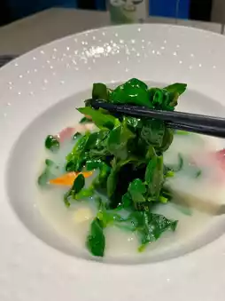 Spring rolls are a specialty, and pairing them with shepherd's purse is innovative