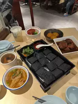 Snacks: "Black Classic" stinky tofu with a crispy exterior and juicy interior; "Jinji Sugar Oil TuoTuo".