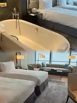 🏘️ Hotel environment: The moment you enter the lobby, you’re surrounded by a sense of luxury! Modern design perfectly blends with artistic vibes, and floor-to-ceiling windows offer panoramic views of the Xiang River and cityscape🌉! The rooms are spacious and cozy, with bedding as soft as clouds☁️. The bathroom features an extra-large bathtub, perfect for a healing soak~ Plus, the attentive butler service makes the experience top-notch!