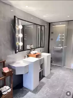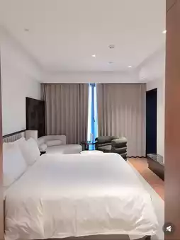 💖 I stayed in their deluxe king room, and the spacious, bright space with its warm decor amazed me the moment I walked in. 🛏️ The bedding was soft and comfortable, making it hard to get up once I lay down. The bathroom design was also unique, with a separate wet and dry area and an oversized vanity mirror—a dream come true for girls! 💄