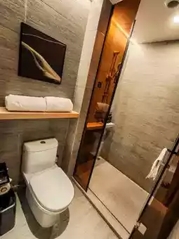 As always, the natural wood tones paired with warm white hues create a very homey vibe. The room decor is thoughtful, complete with their own brand of tea. There’s even a book of poetry on the desk, adding a special touch of charm, and the bathroom is clean and refreshing.