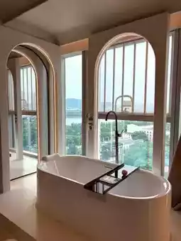 🥳 The floor-to-ceiling windows frame the Orange Isle and Xiangjiang River scenery perfectly. When the night light show starts, every snap looks like a blockbuster! The trendy bathtub with a projector lets you soak and binge-watch dramas, making you feel like the lead in a romantic series!💃