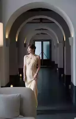 ▪️Twirling in cheongsam on granite paths at noon