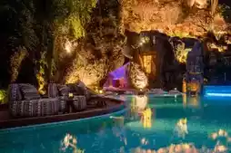 Every frame is a masterpiece! A millennia-old karst cave reception desk contrasts with colorful lights, floor-to-ceiling windows frame the peak forest, and the rooftop "Sky Mirror" reflects surreal mountain views. The cave bar glows with neon hues layered over stalactite textures. Stroll toward "Charming Xiangxi," where sunset has already set the perfect filter. Here, let the landscape be your backdrop—and you, the star.