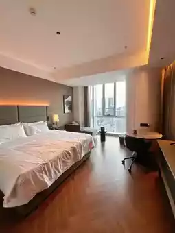 The room offers an incredibly spacious view with minimalist Bauhaus-style design and floor-to-ceiling windows showcasing stunning river views 🤩 Fully equipped with everything you need, including an iron, smart room controls, and separate wet/dry bathroom 👍 The hotel provides FREE parking, 24-hour self-service laundry, a gym, plus Mini bar and complimentary tea/coffee in the lobby!! The service is very thoughtful~ As a mid-to-high-end brand under Huazhu Group, the experience was truly excellent 🥰
