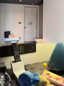 The bathrobes are exceptionally soft and comfortable—I absolutely loved them. The reversible octopus plush toy gifted during turndown service adds a playful touch. The room is well-equipped for daily needs, and the customizable keycard service adds a personal touch. The public facilities are unique: the 1st-floor bar features a resident DJ every night with trendy decor, while the lobby lounge is perfect for afternoon tea with a view of the lush garden outside.