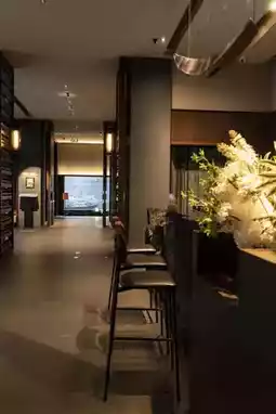 a whole slab of natural stone polished into a bar counter adds grandeur,