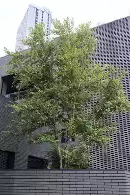 the combination of hollowed-out ceramic bricks and landscape gardens is surprisingly harmonious.