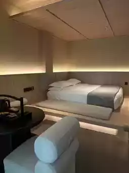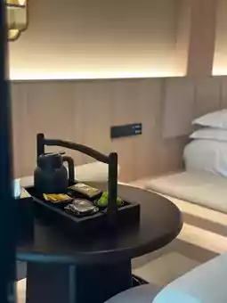 The small tea table in the rest area is super thoughtful, with tea sets and snacks arranged. Brewing a pot of tea and sitting on the sofa next to it is simply so cozy~ The bedroom bedding is clean and comfortable, with soft lighting that instantly melts away fatigue.