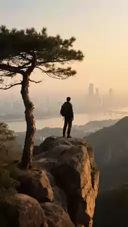 Ancient temple zen vibes + expansive summit views for strong contrast