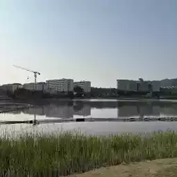 Strolling around the lake is incredibly relaxing 🌿. The sunset here is absolutely breathtaking, with golden hues reflecting off the water, compelling you to stop and capture the moment 📸. Nearby, you'll also find a futuristic white building designed by Zaha Hadid 🏛️. The first time I saw it, I was genuinely amazed! Its curved, minimalist design feels straight out of a sci-fi movie 😆.