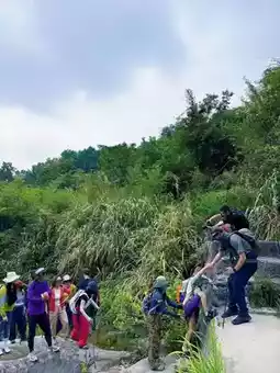It’s best to start from the Mingyue Village Committee at the foot of the mountain (search "Mingyue Village Committee" on your GPS). The entire route is about a 5 km loop. The first section is a steep stone stairway, so non-slip hiking shoes are recommended; the latter half is a gentle dirt path where you can see waterfalls and bamboo groves along the way—perfect for photos and check-ins!
