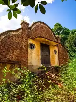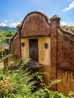 🏯✨ The thin-shell silo design makes this granary look very unique in the residential area. The brick and tile structure with an arched roof covered by cement tiles preserves the rustic appearance of the original grain depot. The red brick walls paired with white mortar joints and the iconic five-pointed star on top combine both the era’s characteristics and local flavor.