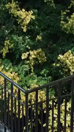 🌳 Golden Storm: Five connected Koelreuteria trees beside the East District lawn, when leaves fall it looks like golden rain