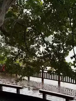 Stone slab road + sycamore rain: The rustling sound is super soothing!