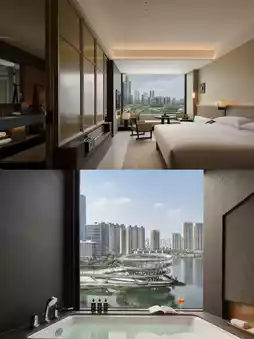 The room setup is absolutely top-notch! Floor-to-ceiling lake view windows frame Meixi Lake like a moving painting, at night watching the lights reflecting on the lake feels like living inside a Monet painting~ Dyson hairdryer, Marshall speakers, King Koil mattress, Fumare bath products, even the coffee machine is Nestlé, every detail exudes old money elegance! The 24-hour butler service is super thoughtful, arriving early comes with a handwritten welcome card + fruit, and at night they leave a warm sweet soup when making the bed, who wouldn’t be smitten with this service😭