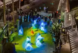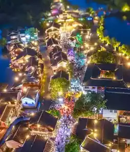 Hengjing Old Street recreates the Jiangnan style of the 1930s and 1940s. Here, white walls and black tiles, winding stone paths, and characteristic shops like Chunlai Teahouse, Weng Family Distillery, and Blacksmith Shop await. You can taste authentic snacks such as crab meat wontons, braised chicken, and fermented rice cakes, or take a break at the Reed Flower Film & Coffee Café. The old street is even more charming at night, with dazzling lights, immersive performances like "Dark Battle · Shajiabang," and spectacular "Iron Flower" shows that take you back to those glorious years.