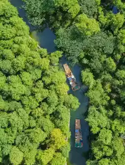 The autumn pond cypress in the water forest turns red, kayak through the woods, wear light-colored outfits for perfect photos, and stop by Jiang Taigong Fishing Platform to overlook the lake and Yushan Mountain.