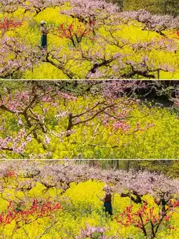 ❹ Late March and early April is the blooming period of peach and rapeseed flowers (real shot as shown in the picture), April is the blooming period of the mountain red.
