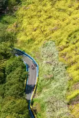 Ticket check ➠ Take a sightseeing car ➠ Take a polar slide ➠ See a thousand acres of peach blossom sea ➠ Aerial train to see the sea of rapeseed flowers ➠ Ride the flying magic blanket to the top ➠ Cloud rafting ➠ Flower and Fruit Mountain Park ➠ Island Coffee