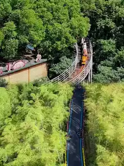 2. Alpine slide through the flowers: Don't miss the 800-meter alpine slide! Whiz down from the mountaintop, through vibrant flower fields and tranquil bamboo tunnels, arriving at the heart of the peach blossom fields. Unleash your inner speed demon!