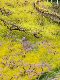 With peach blossoms and rapeseed flowers covering the mountains and valleys, the atmosphere is absolutely perfect!