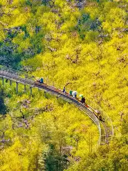 A 1,200-meter-long scooter that travels through a sea of rapeseed flowers and peach blossoms. It's fun and beautiful!
