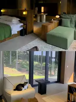 - Three independent villas, each of which is a suite. The landscape is carefully arranged, and there is a dedicated butler to arrange everything💆🏻♀. A pet gift pack will be given upon check-in, which includes some cleaning supplies and pet toys. It is very pet-friendly! Each suite in Songjing Manor has an independent courtyard where cats can curl up on the small sofa to bask in the sun.
