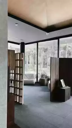 The room decor is a delightful surprise. The mattress is just the right firmness, making you feel like you're gently cradled by clouds—a good night's sleep is guaranteed. The soaking tub and sauna add a touch of luxury to your stay. Soaking in warm water while gazing at the pine forest through the floor-to-ceiling windows makes all your fatigue melt away. The room also features a Cabasse Tahiti Black Pearl speaker and a Dangbei PadGo Air companion device, blending modern convenience and fun with nature.
