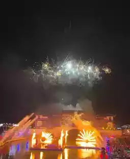 Second stop: Ancient Town. We went there to play and have a meal. The set meal does not include the entrance ticket, which you need to buy separately. The ticket allows unlimited entry for three days, which is very cost-effective. Various NPC interactions are very fun, and the ancient town has a lot of delicious food. The iron flower and fireworks performances are also very rich. The ticket to the ancient town was definitely worth it.