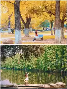 If you want to avoid crowds, consider visiting Kongwangjiao Temple, just a 10-minute drive from Ginkgo Park. The ancient temple nestles against the mountain, offering a particularly quiet atmosphere. The "Ginkgo Queen," a thousand-year-old tree, grows here with strong branches and a full canopy of golden leaves, beautifully showing the passage of time. For a relaxed and cozy experience, the lakeside lawn at Baduyan is a must-visit. Set up a canopy for camping, enjoy the breeze and lake view, try water golf, or stroll on the wooden boardwalk soaking up the sun—so comfortable you won’t want to leave.