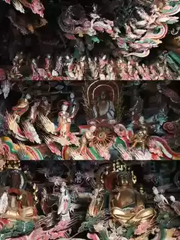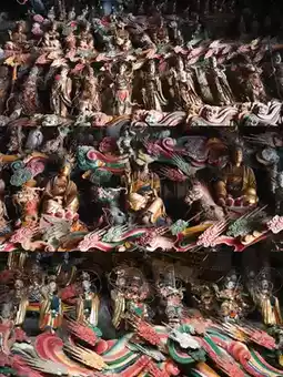 The hall houses approximately 500 sculptures, with the largest measuring about 2 meters and the smallest just 2 centimeters. The content harmoniously blends Confucianism, Buddhism, and Taoism. Due to the compact space, the visual effect is more intricate and dense, creating an overwhelming sense of wonder as you identify each figure using reference materials.