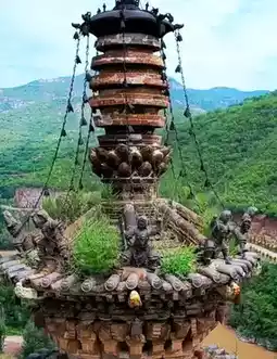 The Dasheng Pagoda (commonly called Qinglong Pagoda) rises 17 meters west of the hall. This seven-story octagonal brick pagoda imitates wooden tower designs, with hollow lower levels and solid upper tiers. Its tapered form, intricate bracketing, and eight iron-chained guardian statues at the summit exemplify artistic mastery. Fifty-six wind-activated iron bells hang from its corners. Folklore claims the pagoda seals a bottomless cave linked to the Zhuozhang River—believed to be the phoenix's throat—thus protecting the region.