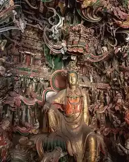 Thousand-Armed Guanyin Group: 2,368 arms suspended, the textures are stunning up close. Hidden Easter Egg: A statue of Sun Wukong nestled in the beam (same as the one in "Black Myth: Wukong").