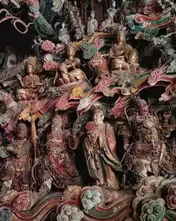"In the 60-square-meter hall of Changzhi Guanyin Hall, 500 Ming Dynasty painted sculptures are hidden! Deities from all three religions are displayed together, and the hanging sculptures resemble a 3D figurine wall—this is the true 'ceiling of Eastern aesthetics'!"