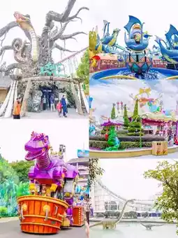 Fantasy Manor: Carousel, dinosaur musical fountain, suitable for younger children.