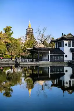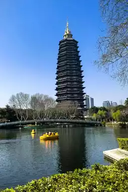 Just outside the temple gates lies Hongmei Park. In spring, the reflection of the Wenbi Pagoda shimmers in the clear water, echoing the distant Tianning Pagoda. Visitors stroll through the park, pausing to watch fish from the bridges or savor tea by the water's edge, where the gentle charm of Jiangnan merges seamlessly with the tranquility of the temple.